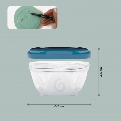 Az edények mércével ellátottak, így a pontos adagolás egyszerű és gyors. A transzparens, újraírható felület lehetővé teszi, hogy könnyedén ráírd a tartalmat vagy az elkészítés dátumát, így mindig biztos lehetsz benne, mit tárolsz bennük.