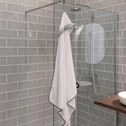 • Egyszerű használat egy kézzel: helyezd a köpenyt a nyakadba, majd a kapucni végét húzd át a rögzítőgyűrűn. Amikor kiveszed a babát a vízből, a fejét a válladra teheted, és egy mozdulattal a kapucnit a fejére húzod – így szabadon marad a kezed.