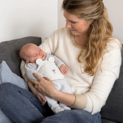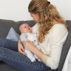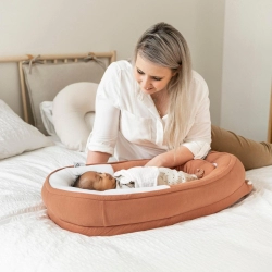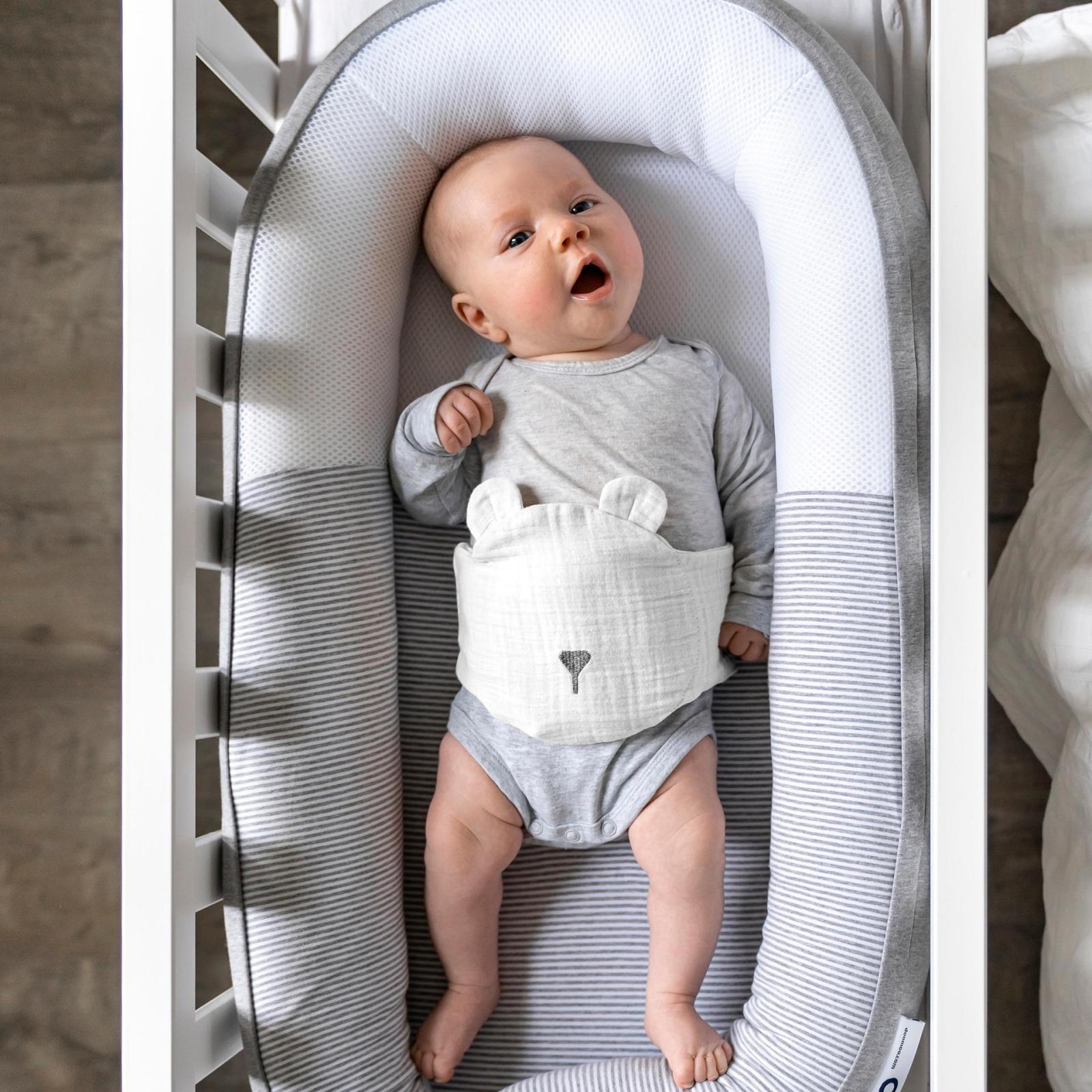 A repce- és levendulamagokkal töltött kivehető párna kellemes meleget biztosít, visszaadva a baba számára az anyaméh nyugalmát, így könnyebben elalszik.