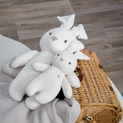 Hosszú fülei könnyen megfoghatók a gyerekek számára, miközben puhasága és kellemes töltete maximális kényelmet biztosít.