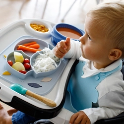 A GIOfresh szilikon előke tökéletes választás a baba önálló étkezésének elkezdéséhez és új ételek bevezetéséhez.