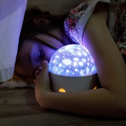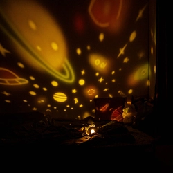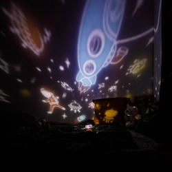 A projektor többféle világítási móddal és cserélhető diaképekkel érkezik, amelyekkel a kicsik az űr titokzatos csillagai között vagy az óceán mélységeiben kalandozhatnak.