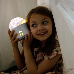 A házikó formájú, kompakt készülék nemcsak hangulatos vetítést nyújt, hanem zenedobozként is működik, így minden este nyugalmat és biztonságot ad a gyermekeknek.