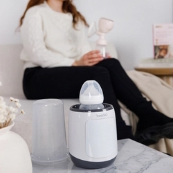 A nagy, világos digitális vezérlőpanel érintőgombokkal könnyen kezelhető és jól olvasható. Adapterekkel a melegítő kompatibilis a piacon lévő vezető márkák cumisüvegeivel.