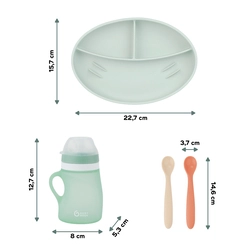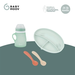 A GROW'ISY 24–36 hónapos babáknak készült komplett étkészlet célja, hogy segítse a kicsiket az önálló étkezés elsajátításában, miközben támogatja a finommotoros készségek fejlődését.