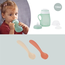 A két puha kanál gyengéd a baba szájához, így tökéletesen alkalmas az önálló evés gyakorlásához.