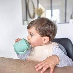 A két fogantyúval, levehető hermetikus fedővel és beépített szívószállal ellátott poharat kifejezetten a kisgyermekek önállóságának elősegítésére tervezték.