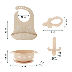 Ideális választás a hozzátáplálás kezdetéhez, 6–12 hónapos babák számára. A készlet vidám „kék kutyus” vagy „bézs róka” dizájnnal elérhető, így az étkezés stílusos élménnyé válik.