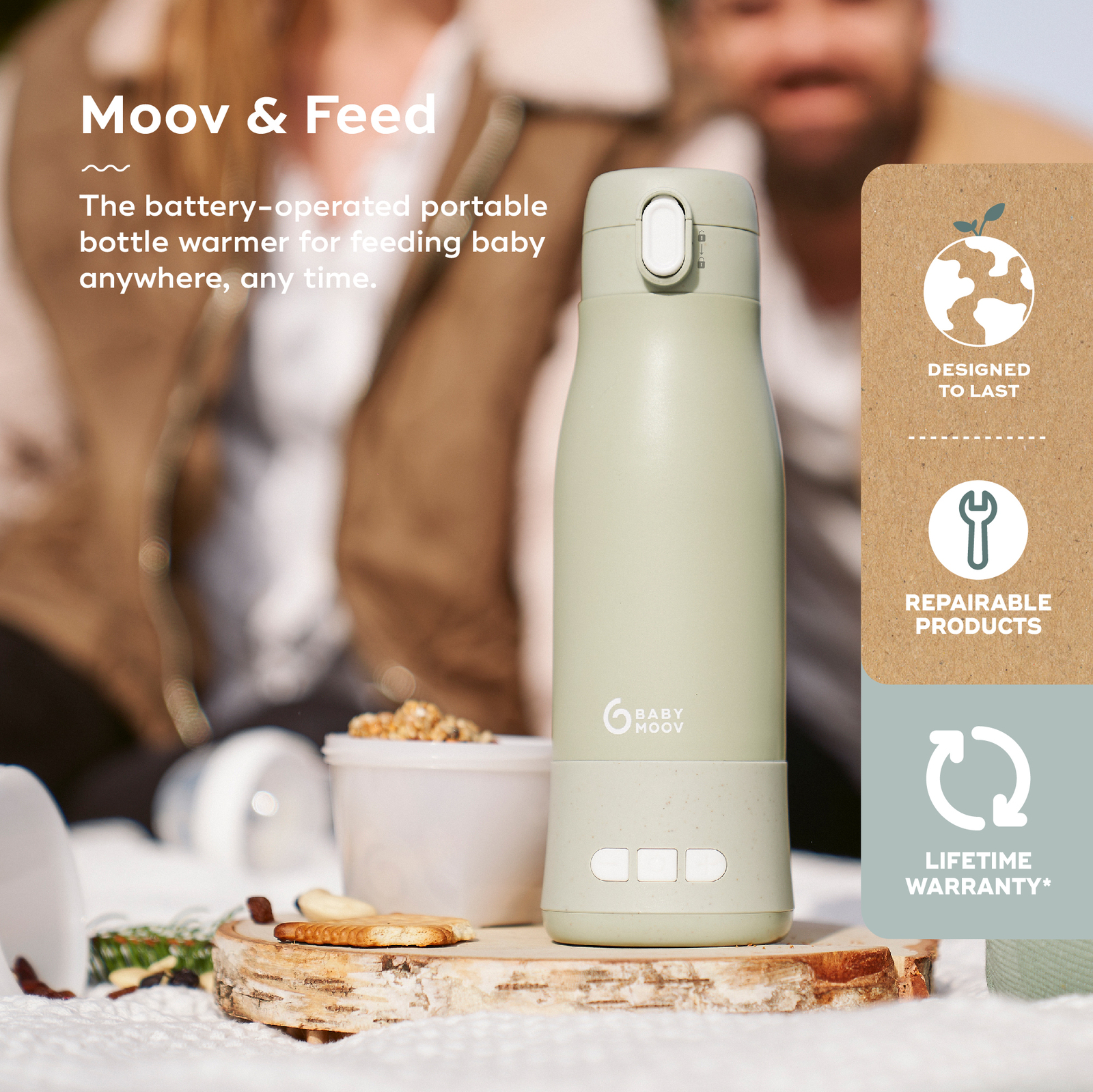 A Moov & Feed cumisüveg melegítővel bárhol, bármikor pillanatok alatt kész a baba itala – mindössze 5 perc alatt eléri a kívánt hőmérsékletet.