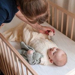 Organikus pamut géz és nagyon puha frottírból készült, GOTS és Oeko-Tex tanúsítvánnyal, garantálva a legmagasabb minőséget a baba érzékeny bőrének.